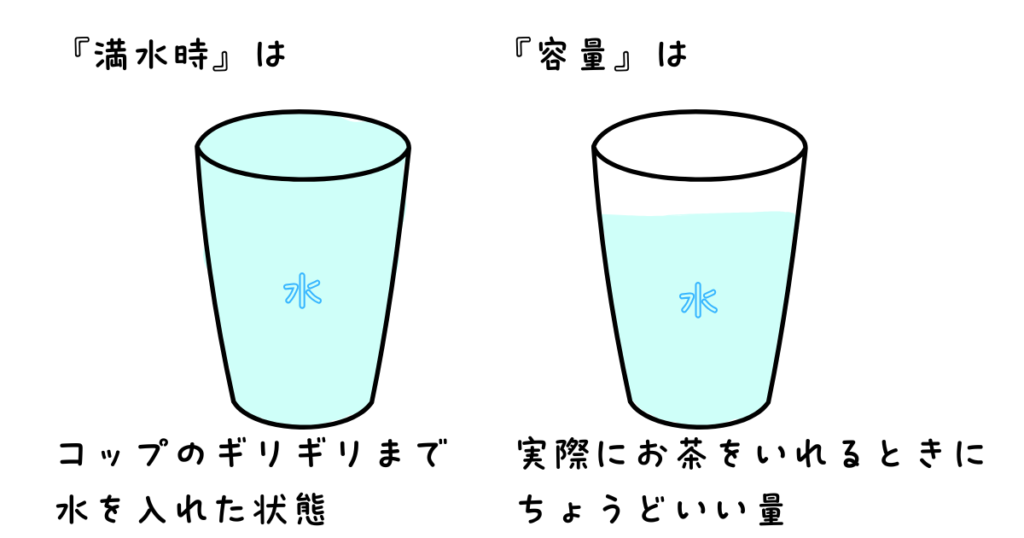 - 『容量』と『満水時』